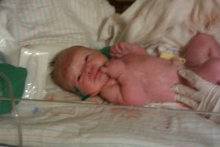 I started having contractions at about 2:30am on Wednesday morning but they were so mild I assumed they were just the same braxton hicks I had been having. When they wouldn't go away I started timing them and they were 5-10 min apart. I still didn't believe it was the real thing but I kept timing them and when they started gettting closer together I woke my husband up. He wanted to get to the hospital right then but I was worried they would send me home so I started walking around the house to see if it they would let up. Of course they didn't and they got to about 3 min apart when we decided it was time to go in.