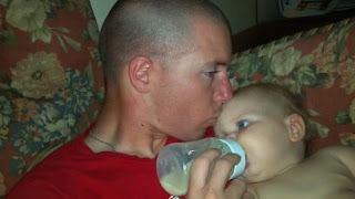 Raedyn had her 4 month doctors appointment yesterday. We finally managed to jump through all the hoops necessary to get her on our insurance so it was a little late. She weighed 17lbs 9.5oz and was about 26in long although I don't think the length is accurate because of how they measure her. She also got 2 shots and the first one didn't even phase her! The second made her scream so loud but she stopped as soon as daddy picked her up. :) The doctor also gave us the green light to start some cereal whenever we felt comfortable with it. I'm not sure when I want to start and origianlly I was going to wait til 6 months but she just seems ready for it. I have a feeling she is going to love it!
