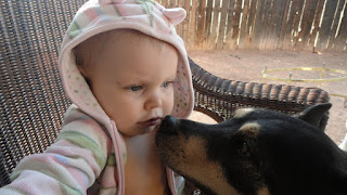 Is it just me or does 15 months sound so much older and more toddler-like than 12/13/14 months. This is the first "month-day" that makes me really feel like I don't have a baby anymore. More than ever my little R always knows just what she wants and is determined to get it. Just the other day I watched her open up the fridge(with just a tiny bit of help from mama), climb up on the flat bottom below the drawers, reach up to the top shelf, and grab her sippy cup. She also won't hesitate to stand up on her tiptoes to reach on the table or counter and grab some crackers that were left out. We're lucky if she gets more in her mouth than on the floor in that way but hey that's why we have dogs right? Right. This is probably one reason the furbabies love her so much. Little girl please slow down a little!